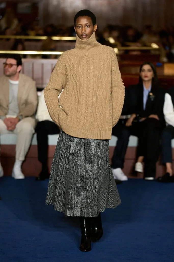 We're seeing a lot of heritage tweeds, herringbone, plaids, and argyle knits that are reminiscent of a weekend in the English countryside.